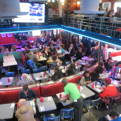 Ellen's Stardust Diner (1650 Broadway, New York, NY 10019) Comida típica americana. La verdadera excusa para atravesar sus puertas es el espectáculo que ofrecen los camareros cantando canciones conocidas de musicales (Mamma Mia, West Side Story…) y grandes éxitos americanos. Ambientado en un bar de los años 50 y con sus camareros vestidos para la ocasión, te sorprenderá ver como al poco de tomar nota de tu pedido comienzan a cantar en directo. Recomiendo ir pronto para evitar las largas colas que se hacen en las horas punta. Zona Times Square.